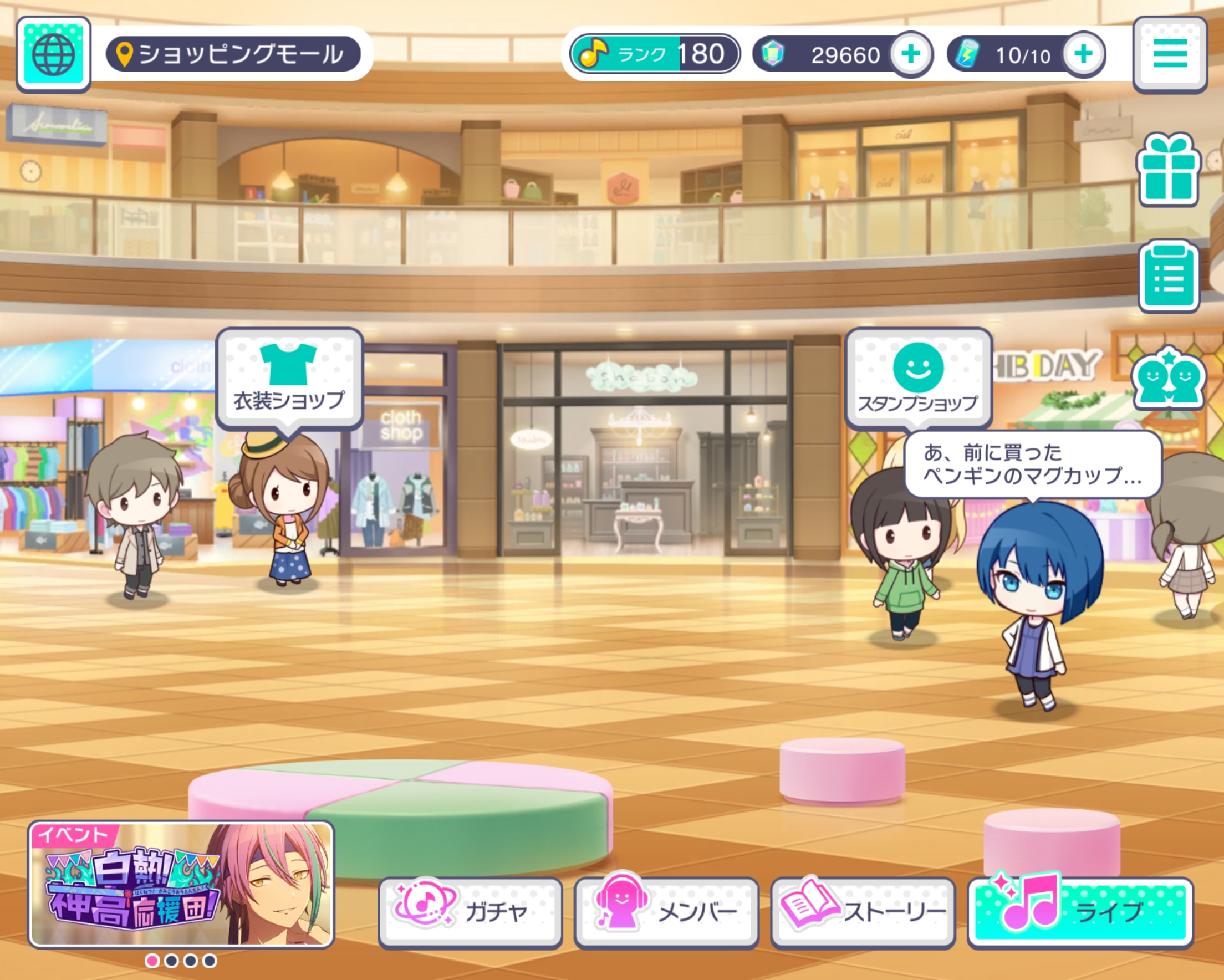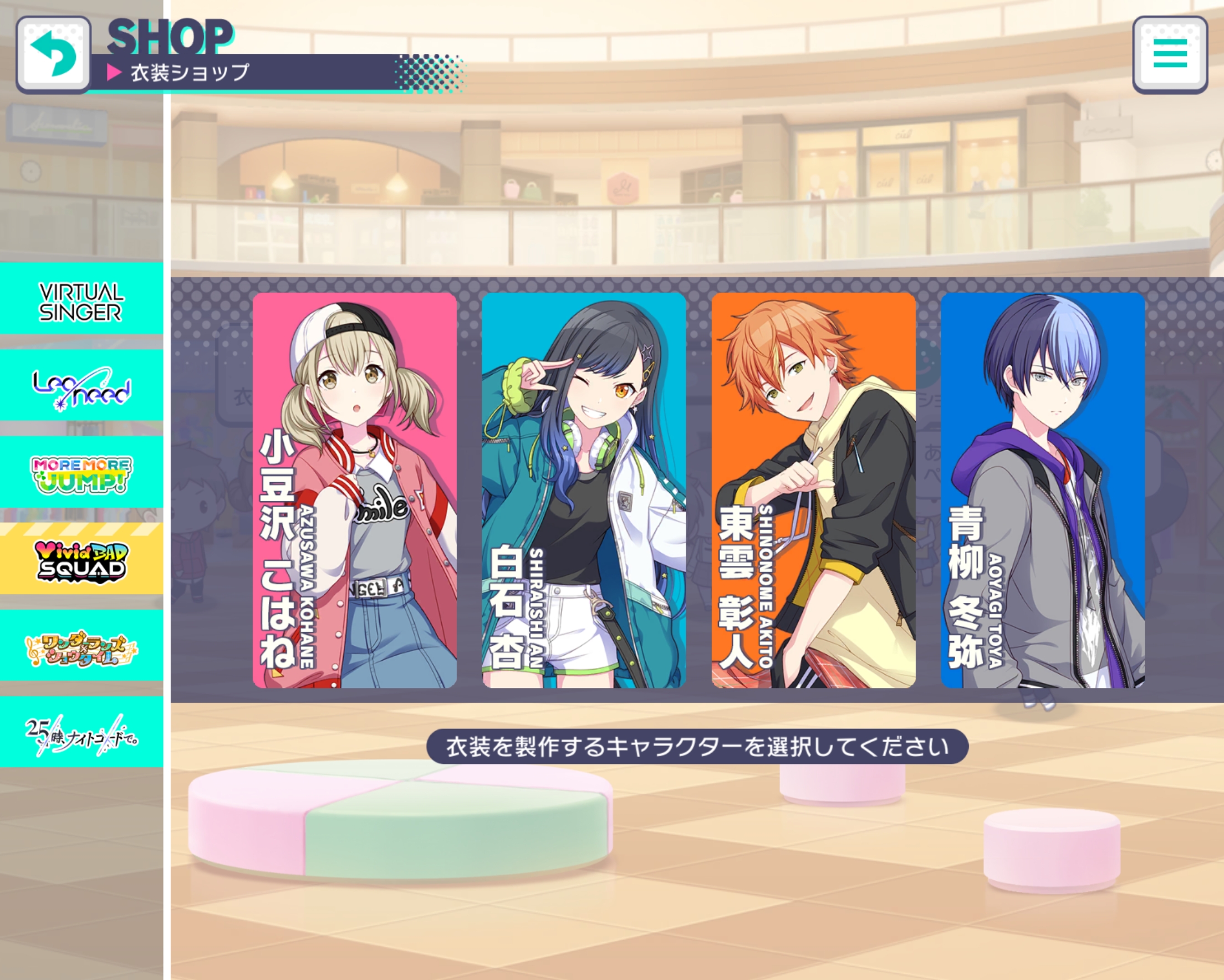 쇼핑몰에서는 의상과 스탬프를 구매할 수 있다.